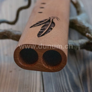 Die Doppelflöten sind so einfach zu spielen wie die Einzelflöten, sie brauchen nur ein bisschen mehr Luft. Bei einer Doppelflöte spielt man die Melodie auf der einen Seite und auf der anderen Seite befindet sich die Drohne im Grundton der Flöte - es klingt, als würden zwei Personen spielen.