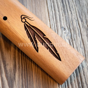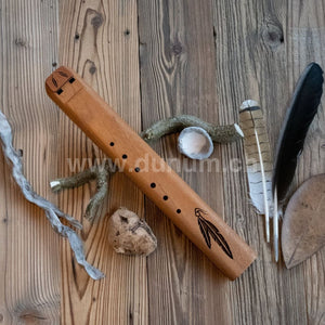 Die Flöte ist in der Tonart 'F #' Moll gestimmt und kann auch in der Diatonischen Tonleiter in der Tonart 'A' gespielt werden. Diese Flöte ist eine gute Begleitung zu jeder unserer anderen traditionellen Flöten (440 Hz), die in der F-Moll-Tonart gestimmt sind.