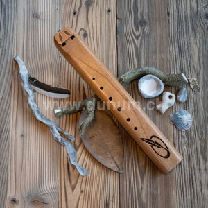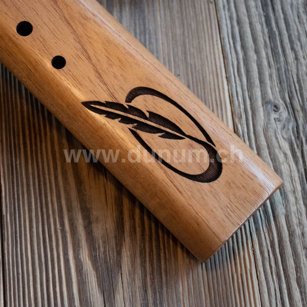 Die Flöte ist in der Tonart 'G'-Moll gestimmt und kann auch in der diatonischen Tonleiter in der Tonart' A # 'gespielt werden. Diese Flöte ist eine gute Begleitung zu jeder unserer anderen traditionellen Flöten (440 Hz), die in der Tonart G-Moll gestimmt sind.