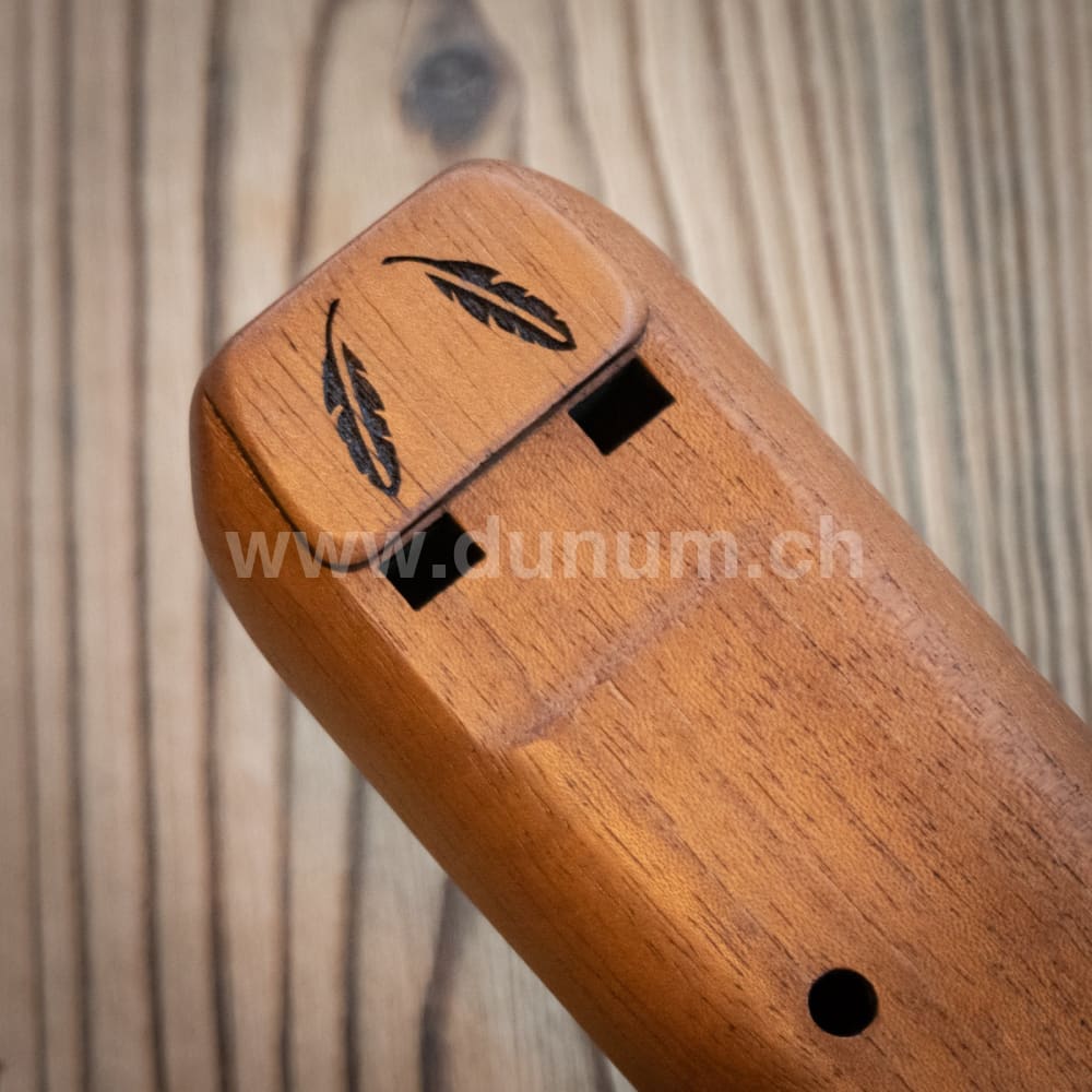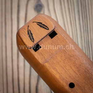 Die Doppelflöten sind so einfach zu spielen wie unsere Einzelflöten. Mit einer Doppelflöte spielt man die Melodie auf der einen Seite und die andere Seite liefert den Bordun in der Grundnote der Flöte - es klingt also so, als würden zwei Personen spielen! Diese Flöte ist die höchste Oktave in der pentatonischen Tonart "h"-Moll und kann auch in der relativen dur-diatonischen Tonleiter in der Tonart "D" gespielt werden. Die Abmessungen für diese Flöte sind: 12,25 Zoll lang (31 cm) und 2,25 Zoll breit (6 cm). Die Nova-Doppelflöten sind handgefertigt aus heimischem spanischem Zedernholz, einem Weichholz, das ihnen eine warme, volle musikalische Stimme verleiht. Die Doppelflöten haben zwei Mundstücke, so dass Sie sie sofort als Doppelflöte oder einzeln spielen können.
