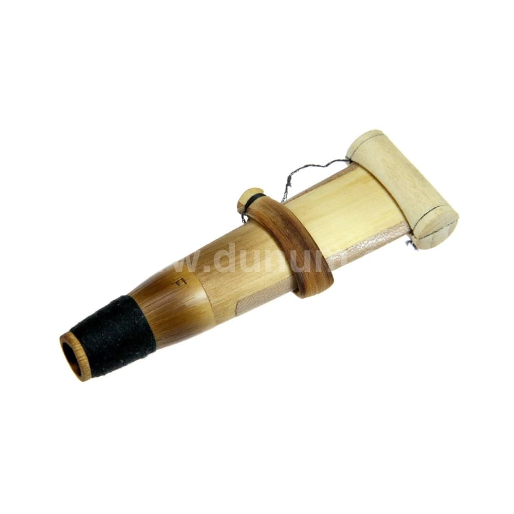 Das Ghamish (Doppelrohrblatt-Mundstück) ist ein Kunstwerk in sich und wird von einem weiteren Meister hergestellt. Im Vergleich zu anderen Doppelrohrblattinstrumenten ist das Rohrblatt des Duduk-Mundstücks länger und breiter. Dieser baulichen Besonderheit verdankt die "armenische Flöte" ihren weichen Klang. Hinweis: Das "F" auf dem Ghamish ist die Signatur des Herstellers und nicht die Stimmung/Tonlage des Ghamish.