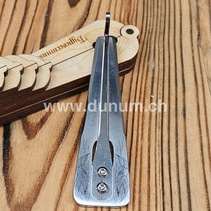 Abgesehen von den Klangeigenschaften hat die Petrel-Maultrommel ein exquisites und raffiniertes Design. Obwohl die Gesamtästhetik ordentlich und einfach ist, hat sie dennoch eine besondere Note. Die raffiniert gravierten Möwen verleihen dem Metallkörper der Maultrommel ein Gefühl von Leichtigkeit und Raffinesse und lassen ihn fast schwerelos aussehen.