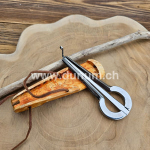 Diese traditionelle jakutische Khomus-Maultrommel wurde von Alexandr Shepelev gefertigt, einem Schüler des renommierten Meisters German Burcev, einer Legende im Maultrommel-Handwerk. Ihr glänzend polierter Rahmen ist lang, elegant flach und zugleich äußerst stabil sowie präzise geschmiedet. Der Klang und die Spielbarkeit entsprechen der typischen jakutischen Tradition – perfekt für ein ausdrucksstarkes, emotionales und tiefgehendes Spiel. Geliefert wird diese Maultrommel in einer edlen Wurzelholzhülle