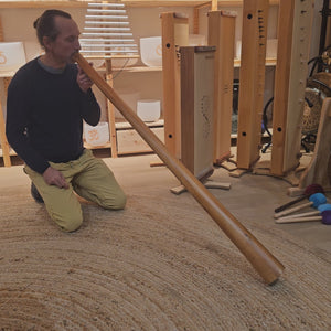 Das Video zeigt ein Beispiel eines solchen Instruments. Das gelieferte Didgeridoo kann in Optik und Klang leicht variieren.
