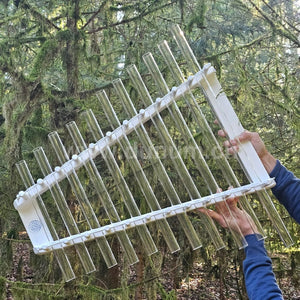 Dieses deutsche Kristallophon ist eine großartige Kreation! Wie die Veena oder die Kristallharfe wurde das 11-Röhren-Kristallophon für das Spielen mit der Hand entwickelt. Es kann jedoch auch mit einem speziellen, dem Instrument beiliegenden Schlägeln gespielt werden. Tauchen Sie einfach Ihre Hände in Wasser und streicheln Sie sanft die Mitte der Kristallröhren, um engelhafte Klänge zu erwecken und ein Gefühl von Leichtigkeit wie eine schwebende Wolke.