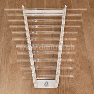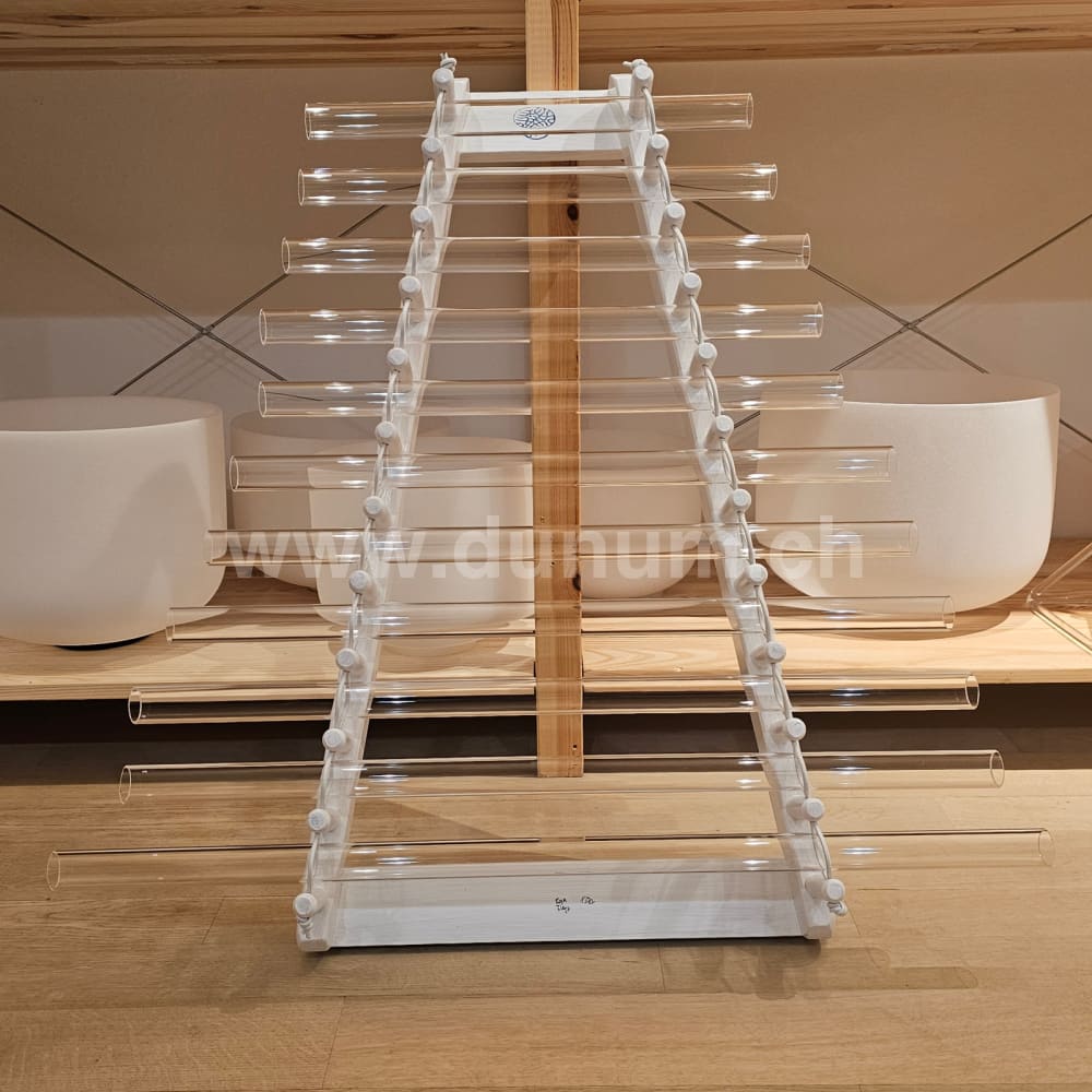 Dieses deutsche Kristallophon ist eine großartige Kreation! Wie die Veena oder die Kristallharfe wurde das 11-Röhren-Kristallophon für das Spielen mit der Hand entwickelt. Es kann jedoch auch mit einem speziellen, dem Instrument beiliegenden Schlägeln gespielt werden. Tauchen Sie einfach Ihre Hände in Wasser und streicheln Sie sanft die Mitte der Kristallröhren, um engelhafte Klänge zu erwecken und ein Gefühl von Leichtigkeit wie eine schwebende Wolke.