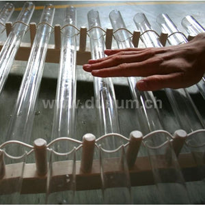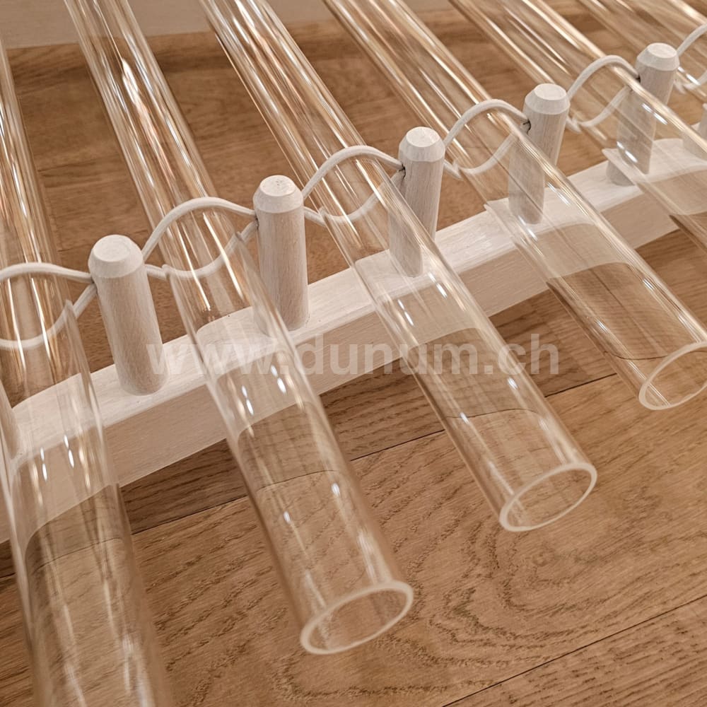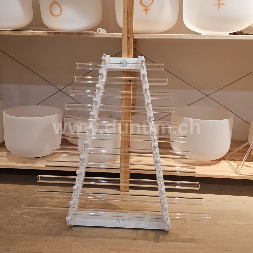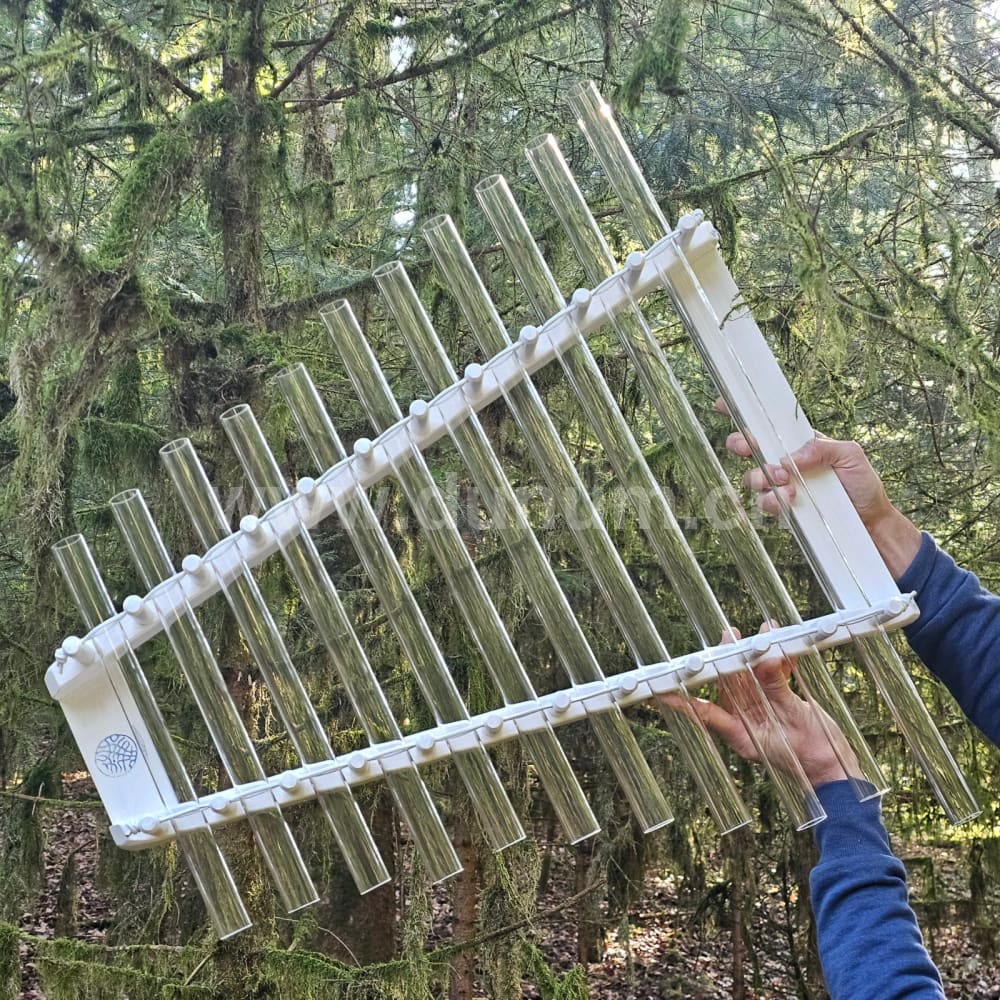 Dieses deutsche Kristallophon ist eine großartige Kreation! Wie die Veena oder die Kristallharfe wurde das 11-Röhren-Kristallophon für das Spielen mit der Hand entwickelt. Es kann jedoch auch mit einem speziellen, dem Instrument beiliegenden Schlägeln gespielt werden. Tauchen Sie einfach Ihre Hände in Wasser und streicheln Sie sanft die Mitte der Kristallröhren, um engelhafte Klänge zu erwecken und ein Gefühl von Leichtigkeit wie eine schwebende Wolke.
