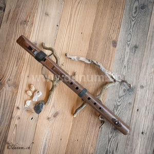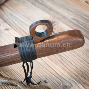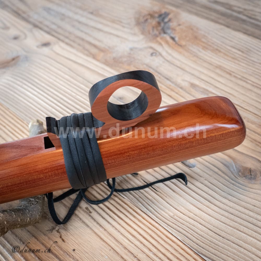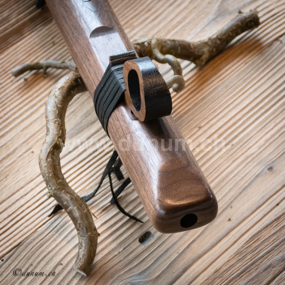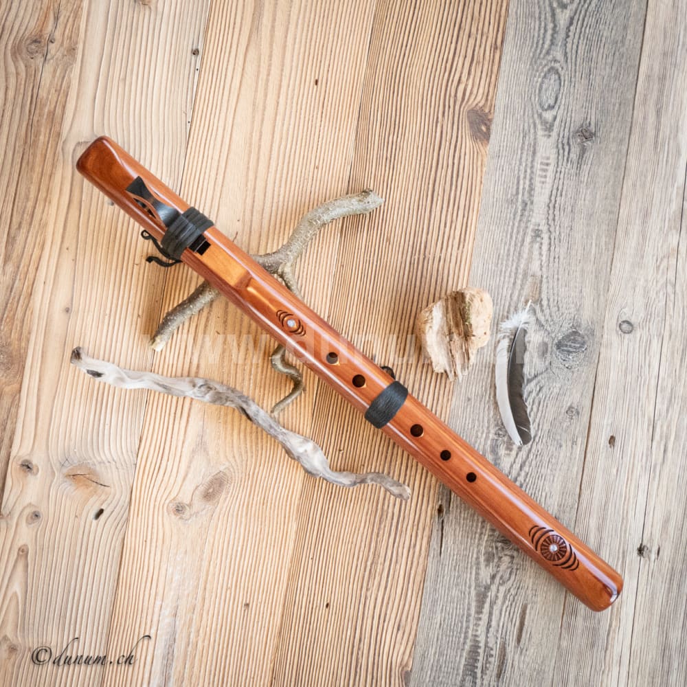 Diese Flöte wird aus einheimischem Zedernholz, also Weichholz oder Walnuss in Amerika auf den Ton D gefertigt. Die Flöte wurde mit natürlichem Öl behandelt, welches der Flöte einen warmen, vollen Ton verleiht.