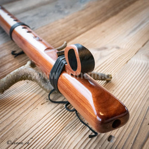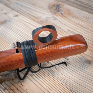 Es ist eine 6 Loch Flöte, aber wir verbinden das 3 Loch mit einem verschiebbaren Lederband, somit hat man die Möglichkeit diese Flöte als 5 Loch sowohl als 6 Loch zu spielen.