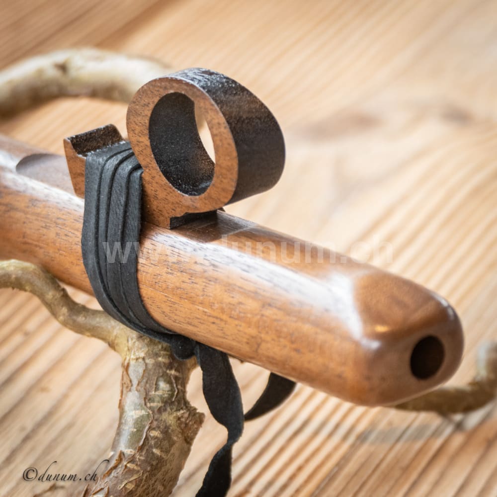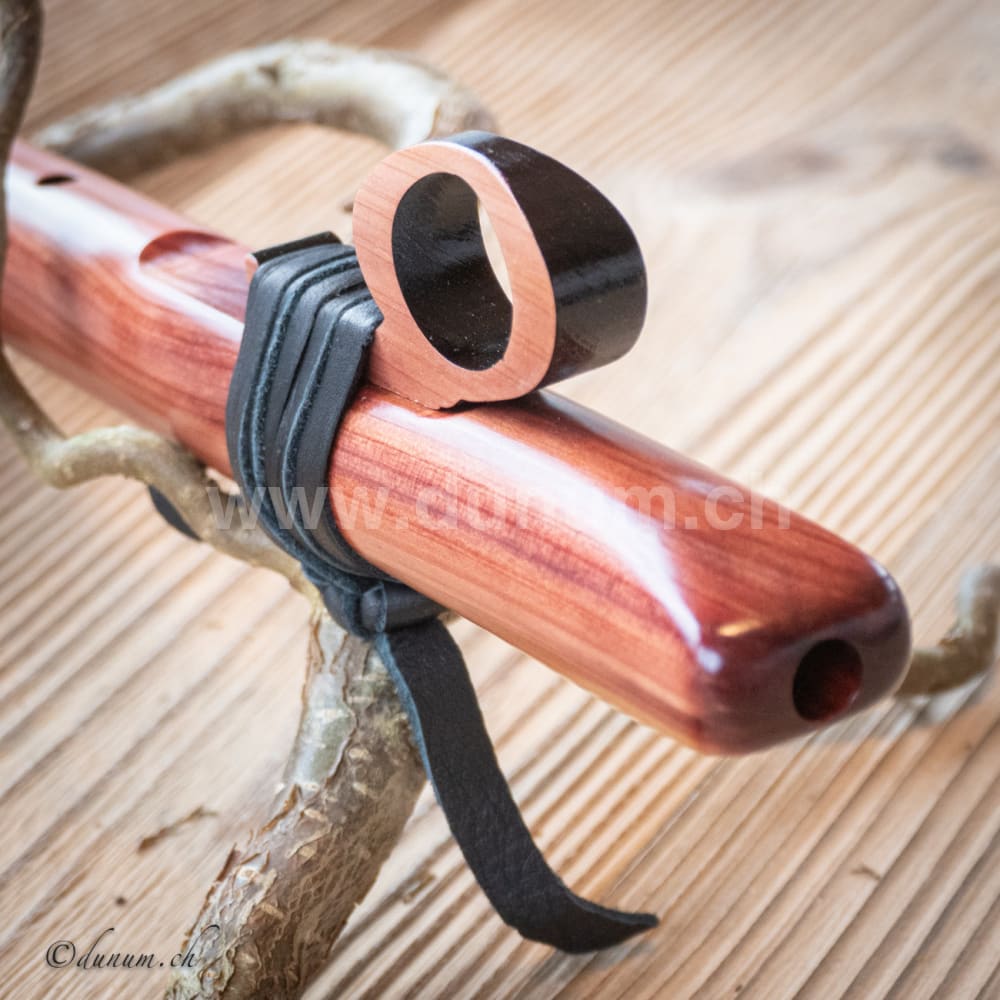 Es ist eine 6 Loch Flöte, aber wir verbinden das 3 Loch mit einem verschiebbaren Lederband, somit hat man die Möglichkeit diese Flöte als 5 Loch sowohl als 6 Loch zu spielen.