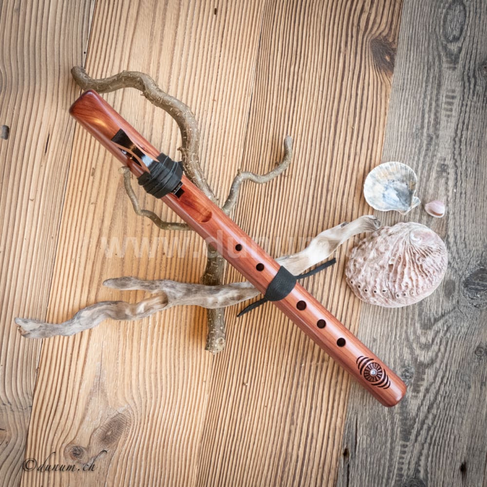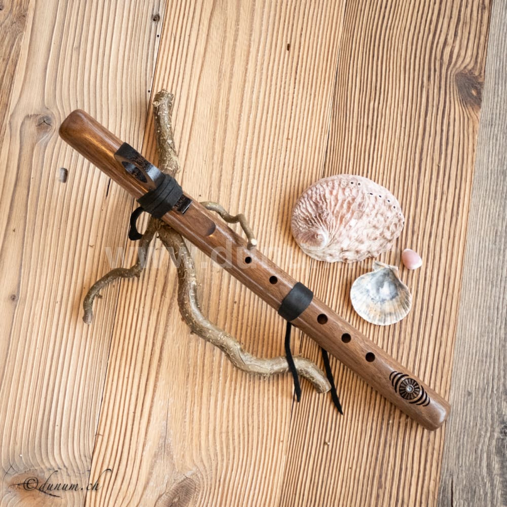 Diese Flöte wird aus Nussbaum Holz und Aromatischer Zeder auf den Ton C gefertigt. Die Flöte wurde mit natürlichem Öl behandelt, welches der Flöte einen warmen, vollen Ton verleiht.