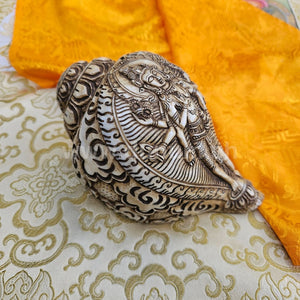 Unsere wunderschönen Muschelhörner stammen aus Nepal. Dieses besondere Stück erklingt im Ton Eb in 440 Hz