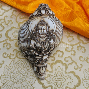Amitayus, auch bekannt als Aparmita, ist der Buddha des unermesslichen Lebens. Er verkörpert Weisheit, Mitgefühl und spirituelle Unsterblichkeit. Oft dargestellt sitzend mit einem Kelch (Kalasha) voller Nektar, symbolisiert er Gesundheit, Langlebigkeit und Schutz vor Negativität. Ideal für Meditationsräume, Altäre oder als spirituelles Geschenk.