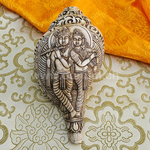 Krishna und Radha verkörpern göttliche Liebe, Hingabe und spirituelle Harmonie. Krishna, oft als Flötenspieler dargestellt, symbolisiert Freude und göttliche Weisheit, während Radha die vollkommene Hingabe und Liebe verkörpert. Ihre Darstellungen inspirieren zu Mitgefühl, Liebe und spiritueller Verbundenheit.