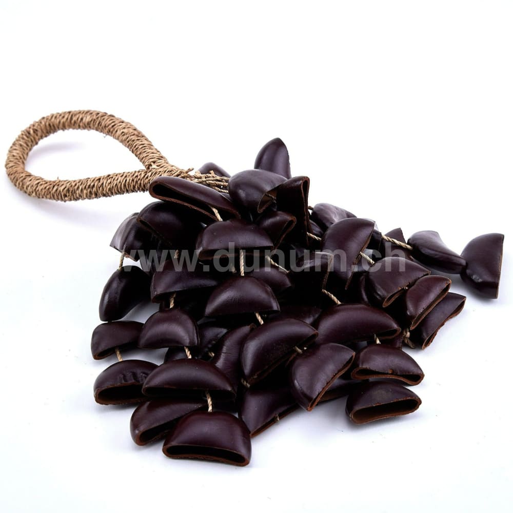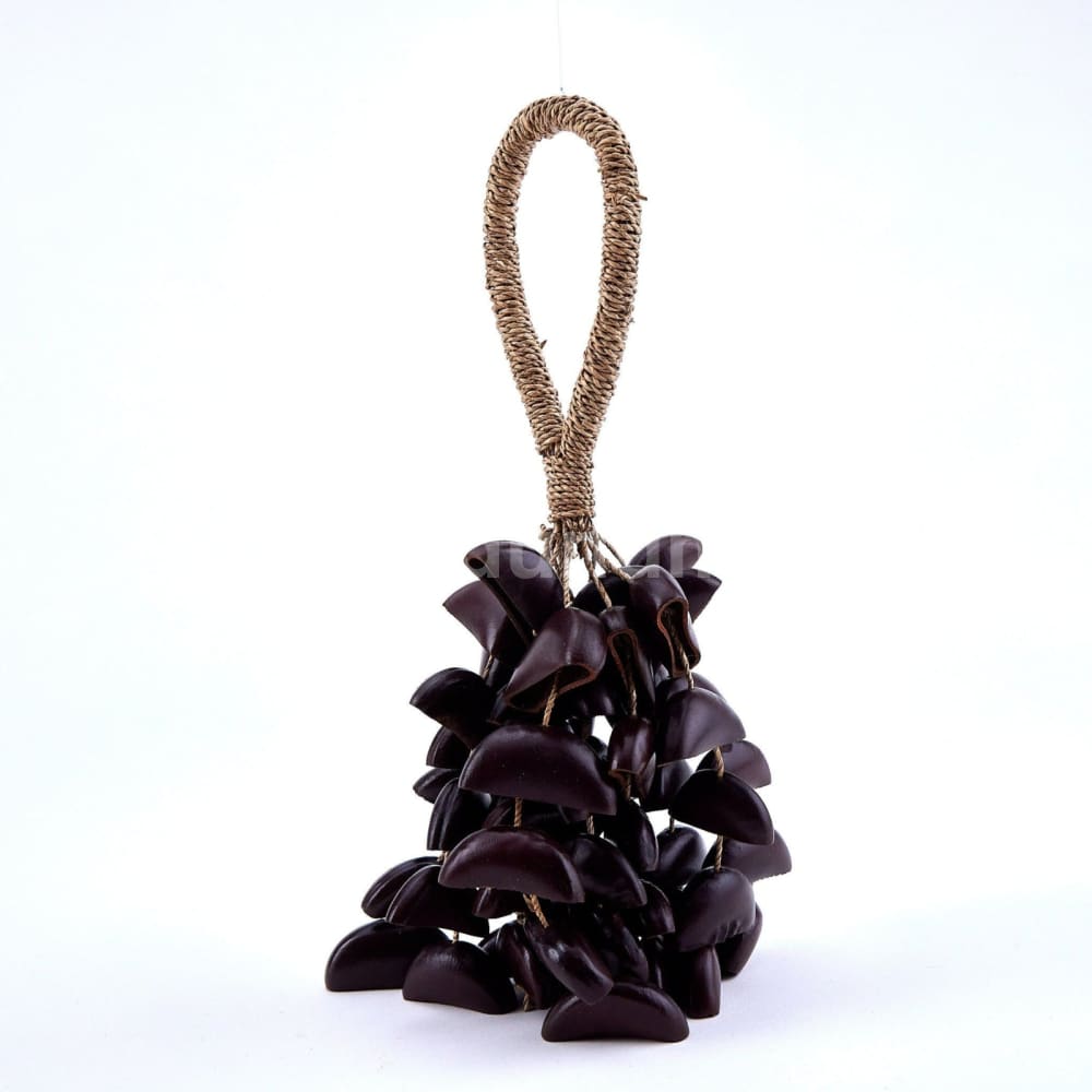 Die Jujunuss Rassel mit Griff hebt sich durch seinen klaren und knackigen Klang gut ab und ist perfekt für entspannende Klangbäder und musikalische Sessions geeignet. Das Instrument besteht aus Juju-Nussschalen, die an einer Handschlaufe befestigt sind.