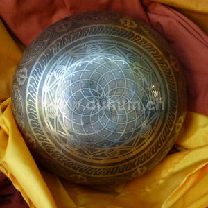 Grüne Tara verkörpert im tibetischen Buddhismus die weibliche Gottheit an sich. In Tibet nennt man sie "Dölma", was einfach Mutter bedeutet. Sie wird dort als Mutter aller Buddhas, als mitfühlende Bodhisattva - wörtlich Erleuchtungswesen - verehrt. Am Rand acht Dorjé und Blumen des tibetanischen Mantras Om Mani Padme Hum.