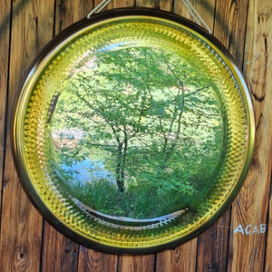 Der Mirror-Gong, auch Spiegel-Gong genannt, ist eine moderne Form des Gongs. Er besteht aus einer Metallmischung aus Kupfer, Nickel und Zink, die man auch Neusilber nennt.