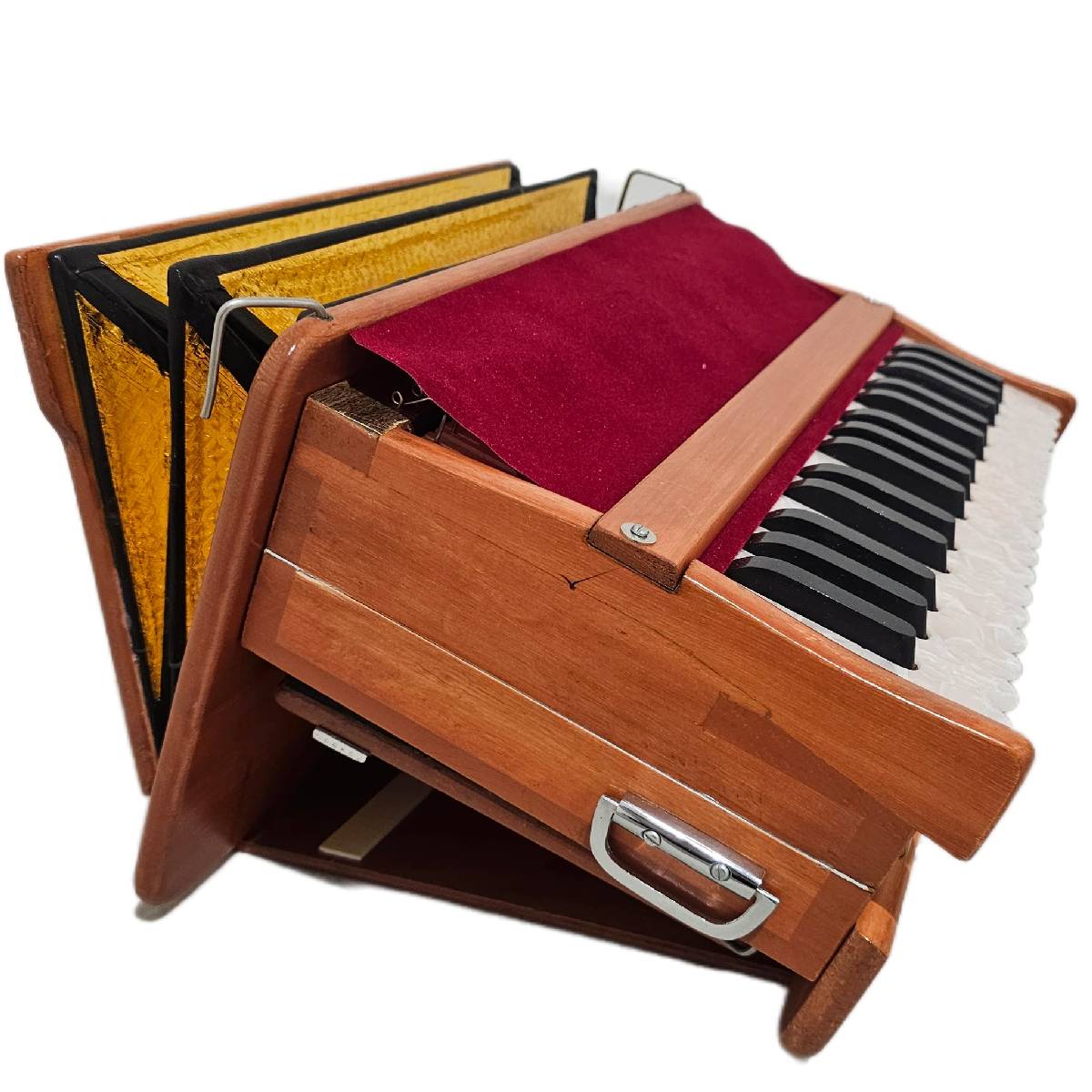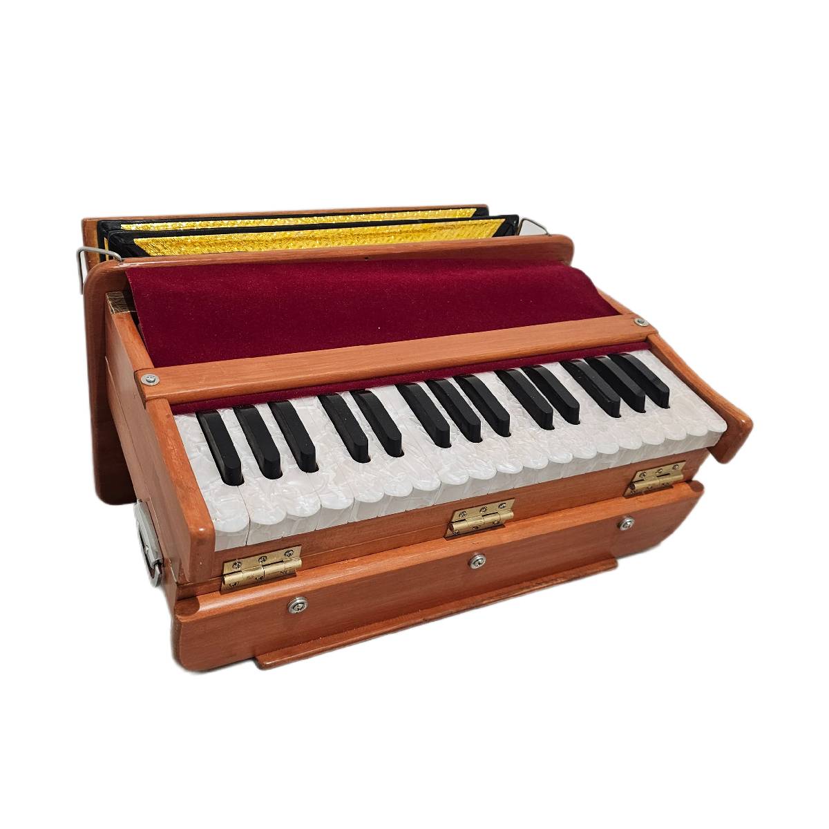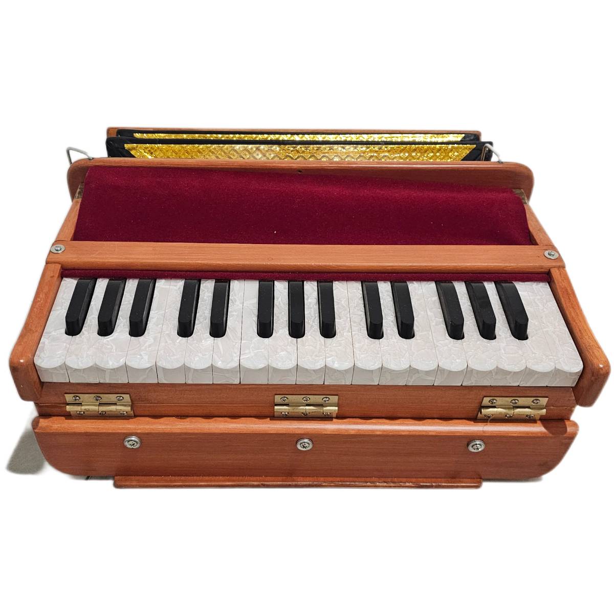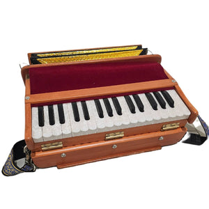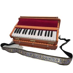 Das Tirupati Harinam Harmonium ist ein besonders kleines, leichtes und robustes Instrument mit durchdringend kräftigem Klang. Sein kleiner Balg lässt ihm allerdings nur wenig Sustain. Ideal für unterwegs, zur Begleitung von Kirtans und Gruppengesängen und für rhythmisch akzentuiertes Spiel.