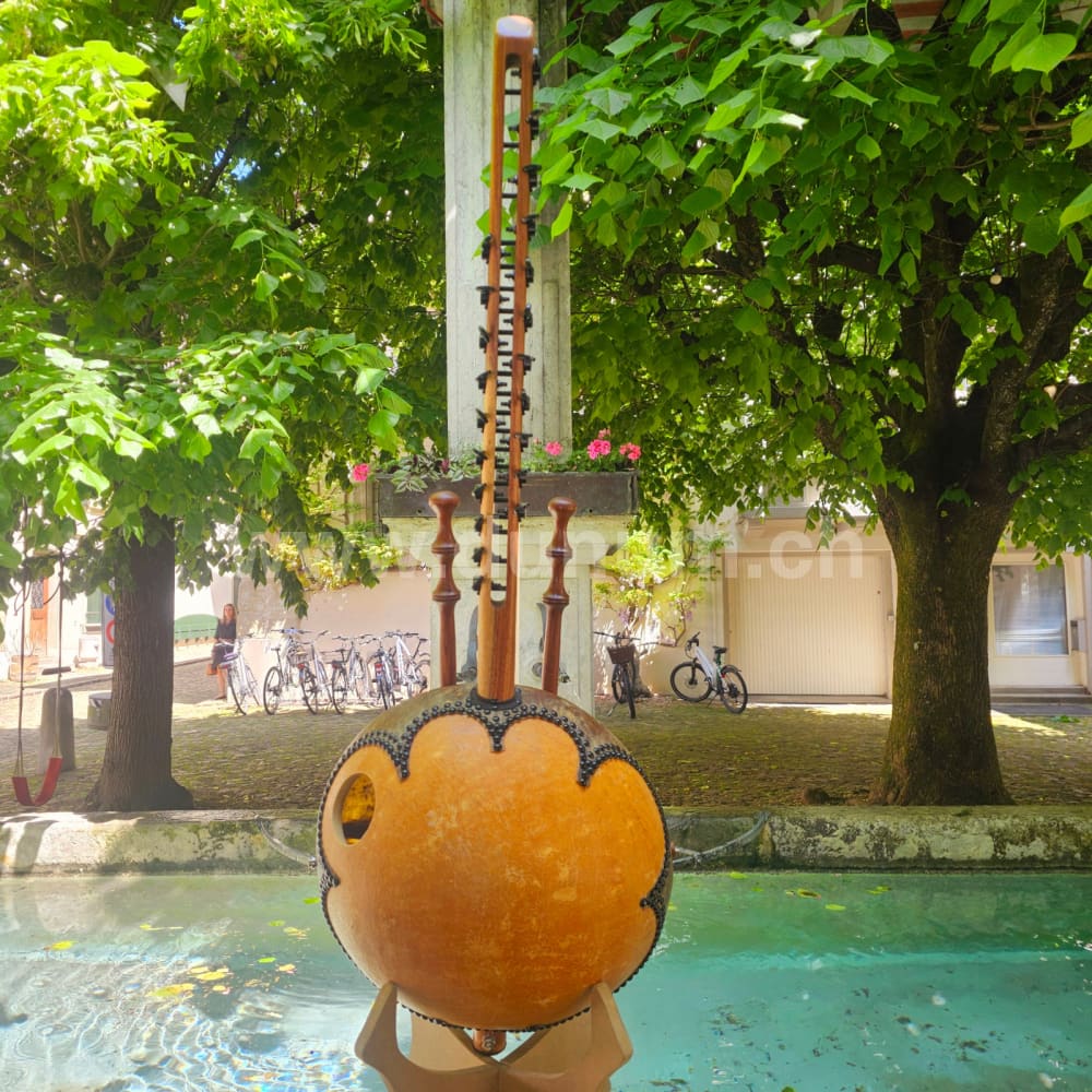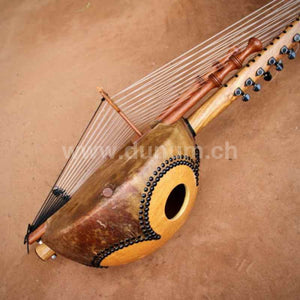 Schlicht aussehende 21 Saitige Kora, aber bis ins Detail perfekt verarbeitet, Kora Liebhaber werden in jeder Hinsicht begeistert sein von ihrem kristallklaren Ton.