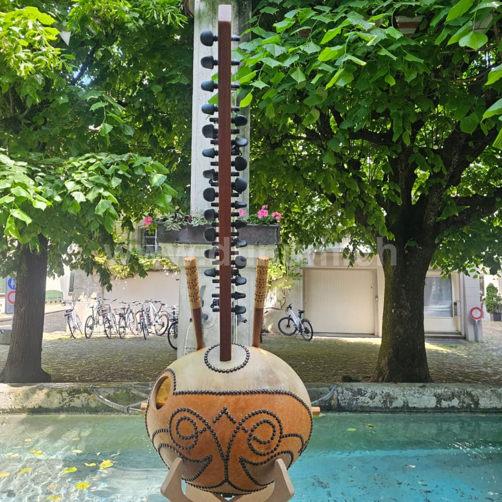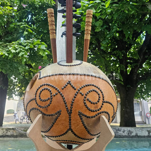 Kora bis ins letzte Detail verarbeitet, vom Meister Korabauer Kora Kaëlig aus Frankreich. Kaëlig Koras werden von vielen Spitzenspielern im Konzert verwendet.