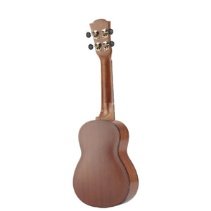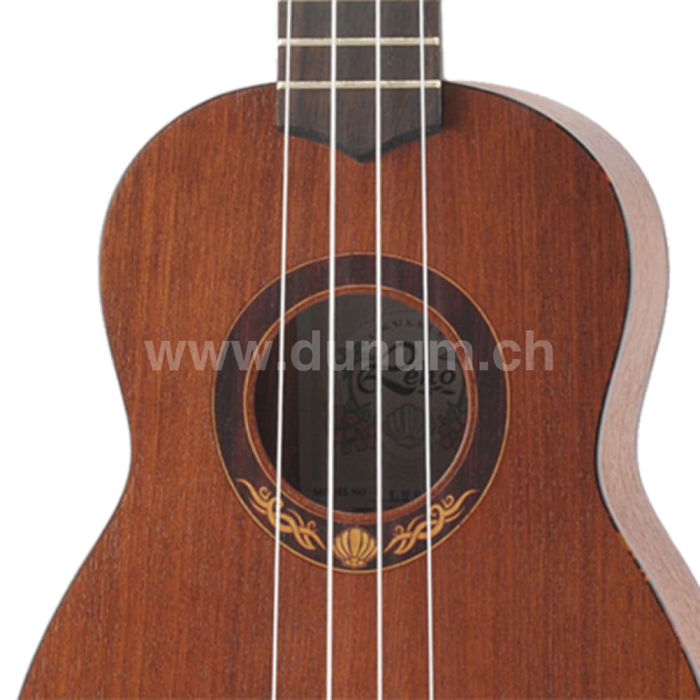 Bauform : SopranDecke : Mahagoni laminiertBoden : Mahagoni laminiert (gewölbt)Zargen : Mahagoni laminiertGriffbrett : NussbaumMensur : 350mmSaiten : Aquila