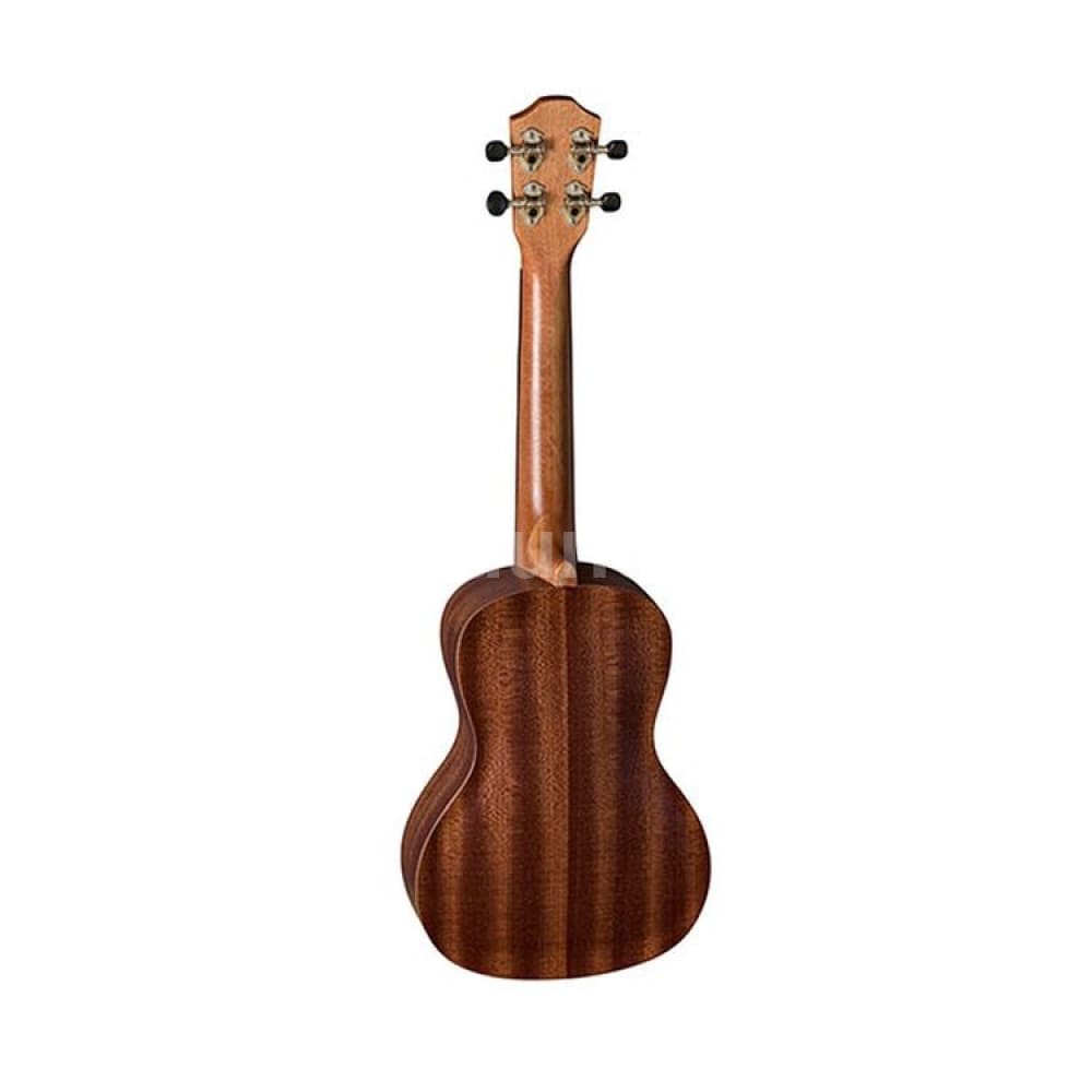 Concert Ukulele, Korpus Mahagoni, Hals Nato, Griffbrett & Steg Walnuss, 18 Bünde, Sattel & Stegeinlage Nubone, Saiten Aquila Nylgut, Finish natur matt offenporig, lasered sun rosette, offene Gitarrenmechaniken chrom mit schwarzen Flügeln, Mensur 37,5cm, Sattelbreite 3,5cm
