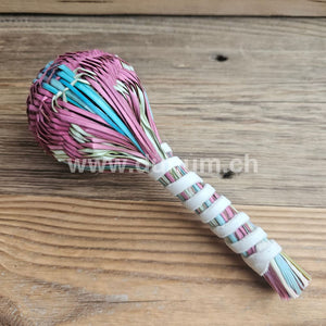 Die Hopi Grasrassel ist ein traditionelles, handgefertigtes Instrument der Hopi, einem indigenen Volk im Südwesten der USA (heutiges Arizona). Sie wird aus natürlichen Gräsern oder Pflanzenfasern gebunden und gefüllt – oft mit Samen, kleinen Steinen oder Bohnen – um beim Schütteln einen sanften, rhythmischen Klang zu erzeugen.