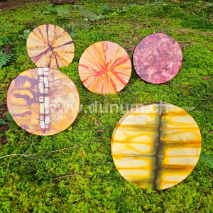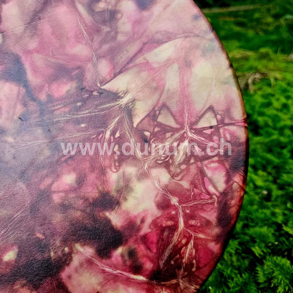 Kleine Ritualtrommel mit 30 cm Durchmesser, handgefertigt und gefärbt von Dunum. Ideal für Kinder oder als kleine Reisetrommel.