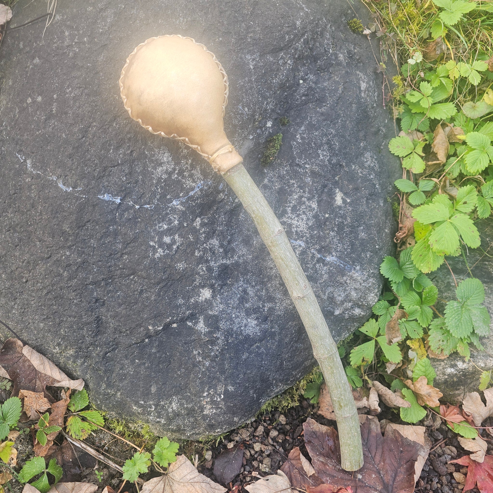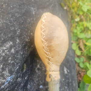Die schamanische Rassel ist ein kraftvolles Werkzeug, das in heidnischen und schamanischen Praktiken zur Heilung, zum Reisen und zur Anrufung des Geistes in Zeremonien verwendet wurde. Es wird angenommen, dass der Klang und die Schwingung der Rassel dazu beitragen können, Energie zu verschieben, heiligen Raum zu schaffen und uns mit der Geisterwelt zu verbinden.