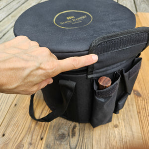 Kommt mit passendem Kissen in den entsprechenden Chakra Farben und Leder Schlägel und einer Tasche, in welche alle reinpassen. Super handlich zum Transportieren.