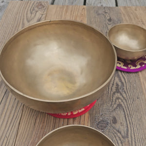 Beim Anschlagen oder Reiben der Schale mit einem Klöppel entstehen tiefe, harmonische Töne und sanfte Vibrationen. Diese Klänge sollen Körper, Geist und Seele in Einklang bringen. Viele Menschen nutzen Klangschalen, um Stress abzubauen, innere Ruhe zu finden oder Chakren auszugleichen.