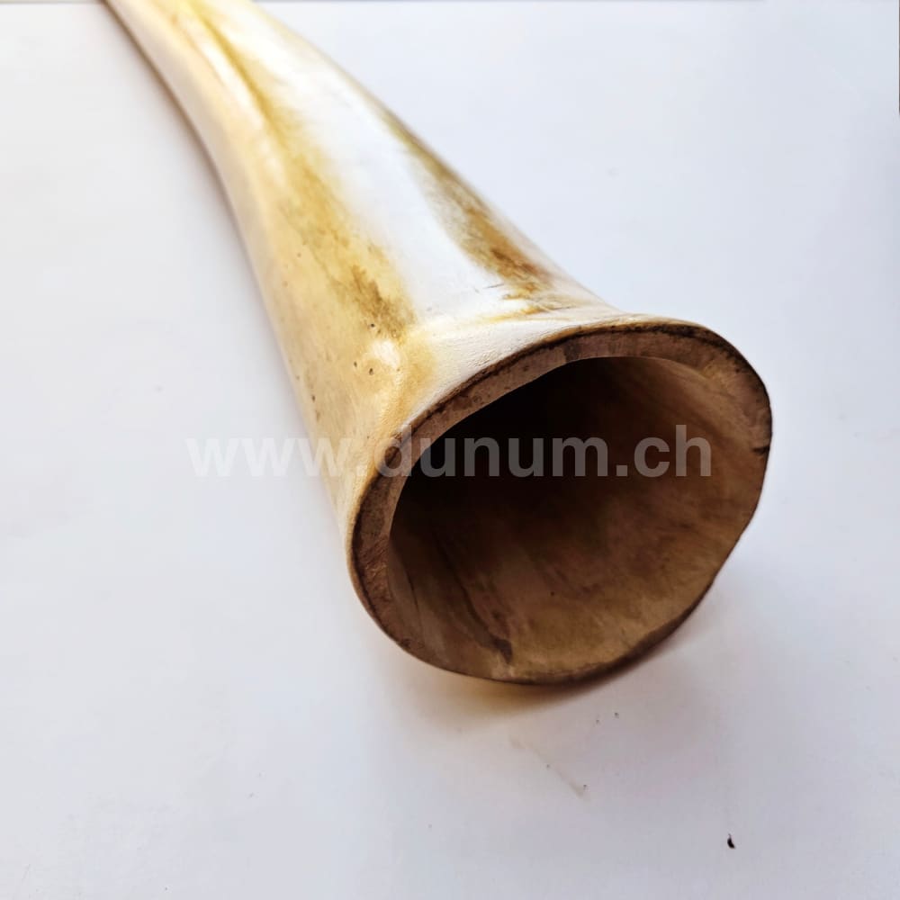 Hibiscus wood is extremely light and very resilient. This didgeridoo is characterized by its professional design, it plays clearly and with a good back pressure. By cutting the wooden body in half and then hollowing it out and reassembling it, a perfect increase in the inner diameter is achieved, which, together with the thin walls, ensures a clear sound.