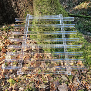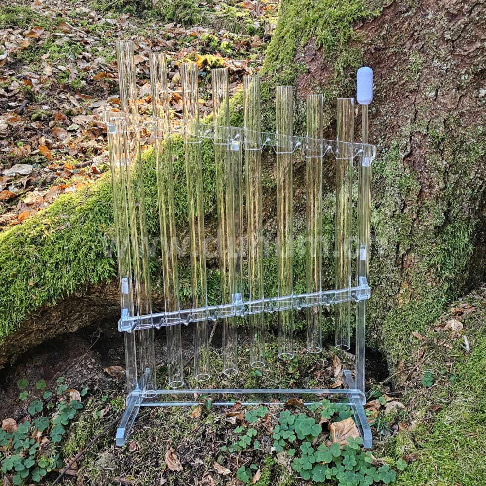 It consists of an acrylic base and quartz crystal notes. It comes with a holder made of polycarbonate (a very resistant material) that allows it to be played safely vertically.