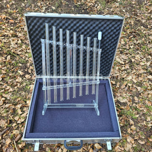 Developed and designed by Francis Robillard, the founder of Cristal Musique, the crystal xylophone was born in May 2011. Since then, it has been revised and perfected to finally reach the current version, which is intended to be optimal and elegant.