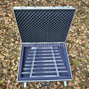 1 mallet, well-padded aluminum case and stand