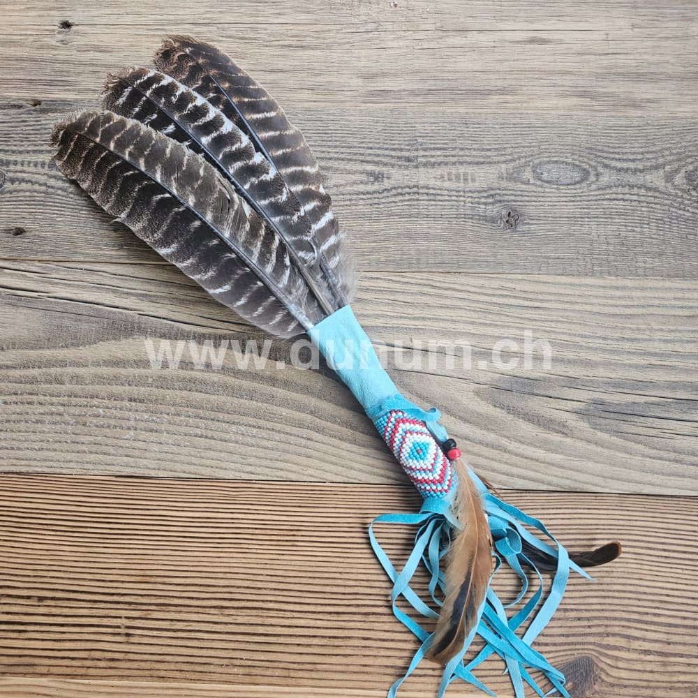 Prayer fans are often given as gifts to heal the heart and soul.Just as the indigenous peoples of North America once used feathers to carry their prayers to heaven and receive healing power there, may this fan accompany you every step of the way.