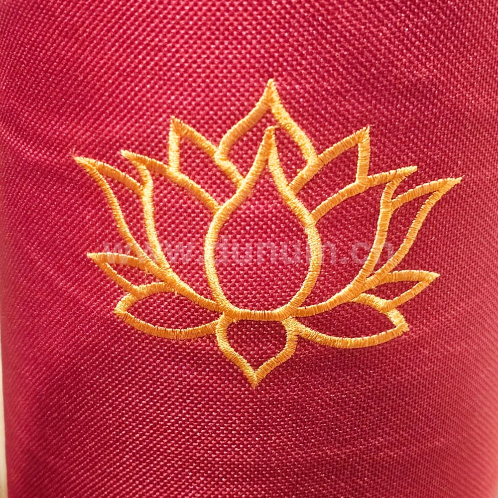 This robust bag made of water-repellent nylon fabric is embroidered with an elegant lotus flower. The adjustable carrying strap ensures comfortable transportation.