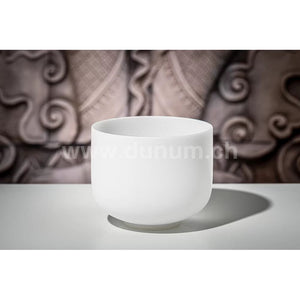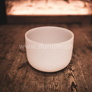 The white frosted crystal singing bowl made of high-purity quartz creates a very harmonious aura with its sound and design. Its long-lasting, spherical sound spreads out when the singing bowl is gently struck or rubbed, so that the energy can be felt throughout the entire environment.
