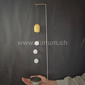 A practical stand for wind bells that can be used simply by hanging the wind bell on the hooks of the stand. The simple design is suitable for any type of wind bell. Please insert it by inserting the hook into the hole at the bottom of the base. Both the hook and the base can be removed when not in use and stored to save space. Even if you cannot hang your wind bell under a roof overhang, you can enjoy its sound all year round, regardless of the season. Adjust the length of the wind bell's silk thread when using the stand.