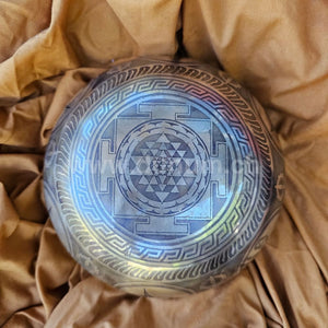 Singing bowl with ornate patterns