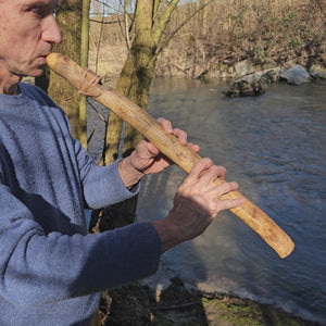 He makes his flutes with the simplest hand tools, in the open air and with the power of fire. Each one is carefully selected, carefully crafted and finished with dedication. The result is always a unique piece - with its own unique sound, evolved character and tangible depth.