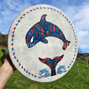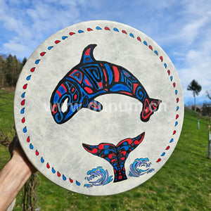 Buffalo Drum, 16" / 40 cm with mallet by Remo - Vegan - with the gentle giant. Painted by our daughter 11 years