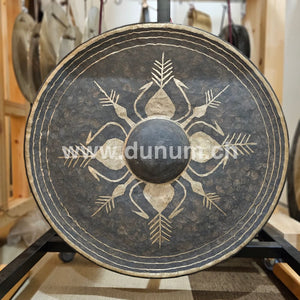 Les gongs birmans sont traditionnellement utilisés pour les célébrations et les cérémonies funéraires, les chants et les représentations théâtrales. Ce gong birman est martelé à la main de la même manière qu'ils le font depuis des siècles. De nombreux villages, temples et maisons plus anciens les utilisent encore pour des pratiques rituelles.