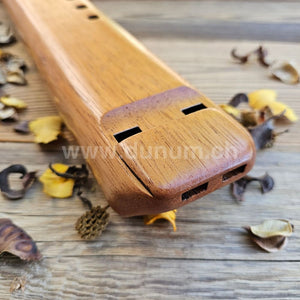 La flûte basse Double Nova dans la tonalité de "mi mineur" est accordée à la fréquence de 440 Hz et fabriquée à la main à partir d'une seule pièce de bois de cèdre espagnol durable et indigène, qui offre un son musical chaud et riche.