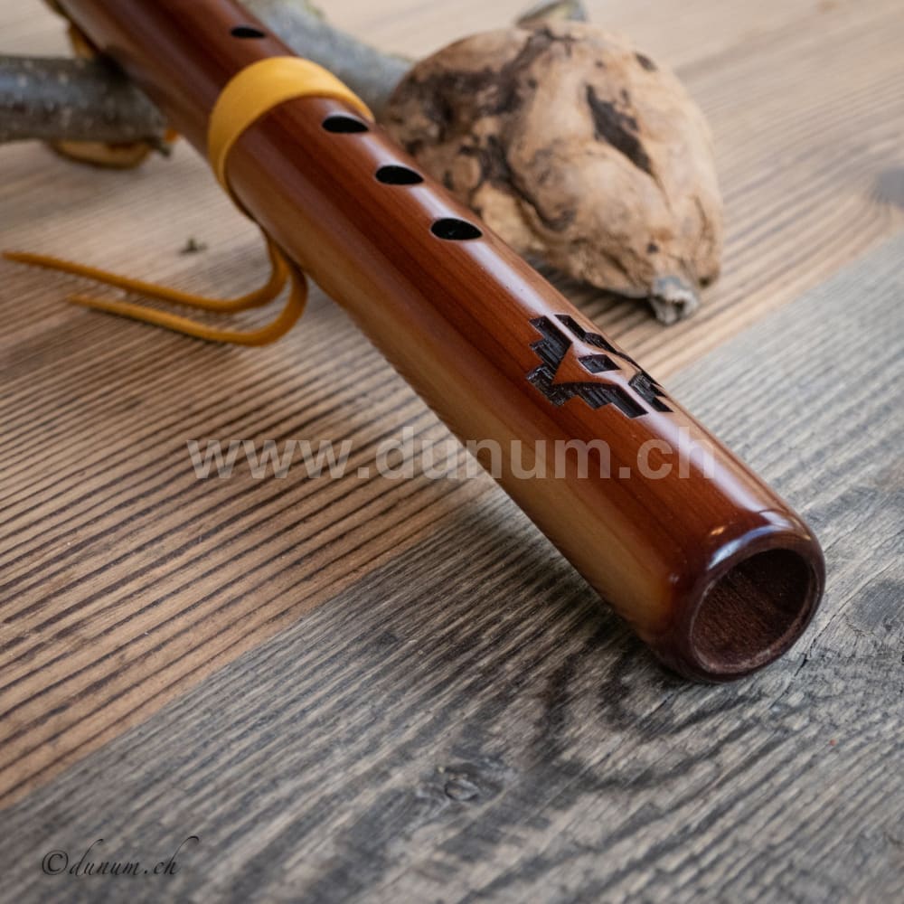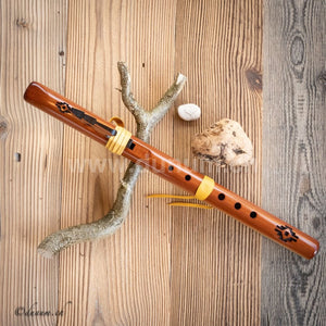 Tail Hawk dans la tonalité "Sib" - mineur est fabriquée en bois de noyer local, un bois dur, ou en cèdre aromatique, un bois tendre. La flûte est scellée avec des huiles non toxiques, ce qui donne à cette flûte une voix claire et lumineuse. Cette flûte en bois est l'octave la plus élevée dans la tonalité "Sib" que nous fabriquons et constitue une bonne flûte d'accompagnement pour la flûte Condor Bass Sib. Sa facilité de jeu et sa durabilité la rendent idéale pour une utilisation en extérieur comme la randonnée et le sac à dos. La flûte a un son plus grave que le Merlin "C". Il s'agit d'une flûte à 6 trous. Nous couvrons le 3e trou du haut de la flûte (connu comme le 6e trou) avec une bande de cuir et offrons la possibilité de l'utiliser comme flûte à 6 trous ou à 5 trous.