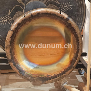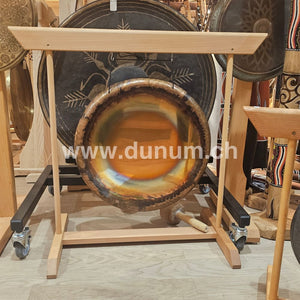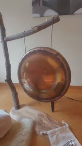 Fabriqué en bronze de haute qualité, le gong produit un son profond et harmonieux qui met le corps et l'esprit en harmonie. Sa forme ovale lui confère une dynamique sonore particulière avec des vibrations finement graduées et une longue réverbération flottante.