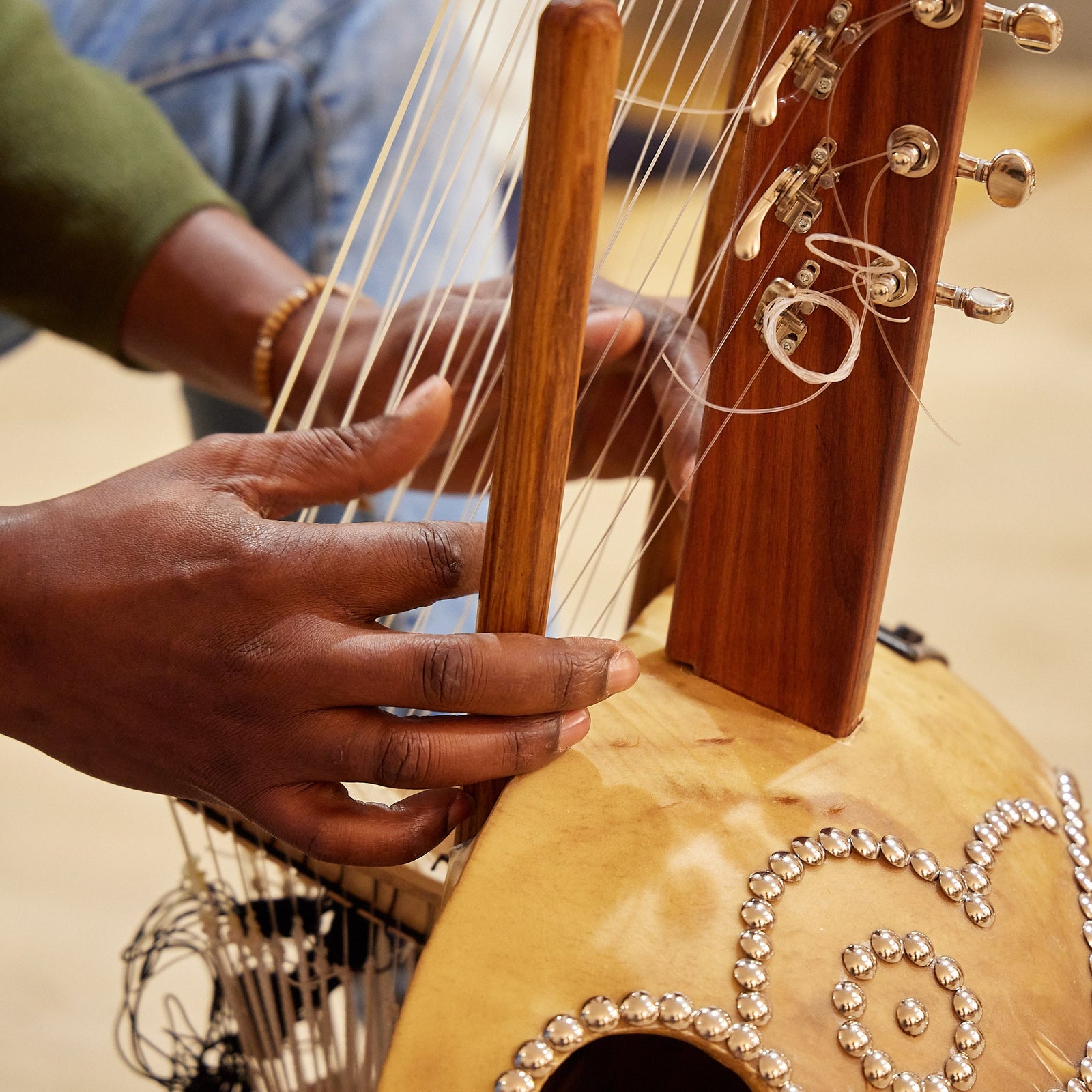 Découvre la fascinante diversité des instruments à cordes et plonge dans un monde d'inspiration musicale ! Notre sélection comprend des instruments exotiques comme la kora, une harpe à chevalet traditionnelle d'Afrique de l'Ouest, ainsi que le goni particulier des chameaux, deux instruments que Franck von Dunum joue depuis de nombreuses années.