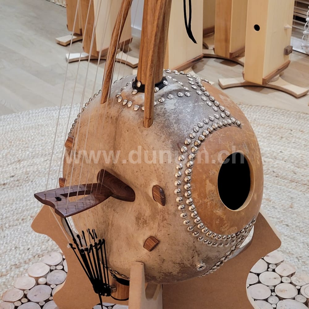 Composé de bois de balafon avec des incrustations d'ébène sur le chevalet et le manche. La "12 cordes" est devenue au fil des années la "norme" de Kamélé n'gonis. Elle offre en effet une large tessiture d'un peu plus de deux octaves. Elle est équipée d'un ampli d'initié Schatten LP-15 et d'un étui adapté.