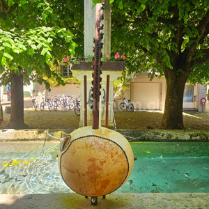 Kora à 21 cordes de Gambie avec un beau bois de noyer des Pyrénées françaises.