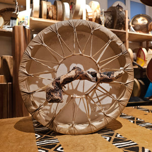 J'aime créer des tambours - chacun est unique. Lors de la construction, je me laisse guider par mon intuition : le type de peau, teintée ou naturelle, le cadre approprié, le bois, le moment.